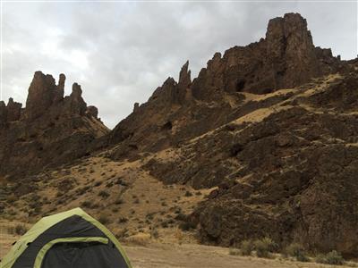 Waking up on a Thursday morning, I stretched and hopped out of my tent in awe of the beauty surrounding me. We had arrived at Succor Creek State Natural Area in the dark, and we only had a vague notion of the rocky cliffs that hung above us and the stands of vegetation behind us along the creek bed. Illuminated by the morning light, this landscape sparked new excitement for the adventure that was just beginning — my first trek into the Owyhee Canyonlands.