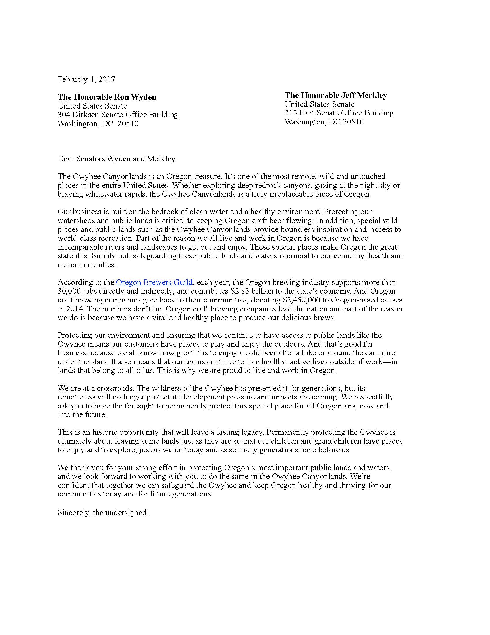 As brewery professionals and people who have experienced these lands first-hand, we support Senators Wyden and Merkley in continuing their strong work to protect the Owyhee.