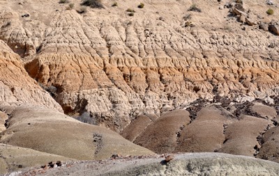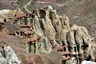 The badlands at Chalk Basin may look like the Painted Hills in the John Day Fossil Beds National Monument in Central Oregon. But the Painted Hills are made of ash from Cascade volcanoes. The geologic story at Chalk Basin is quite different.